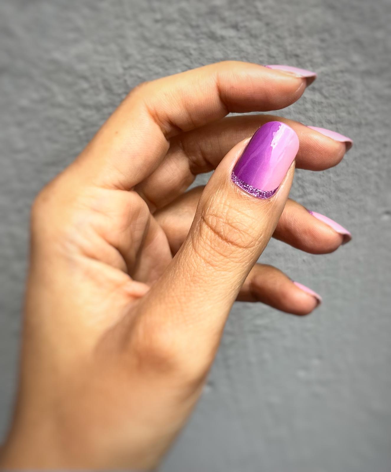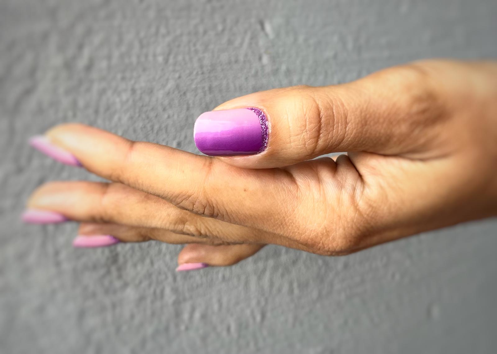 Vertical Ombre mit Glitzer. Im unterschiedlichen Licht fotografiert.
