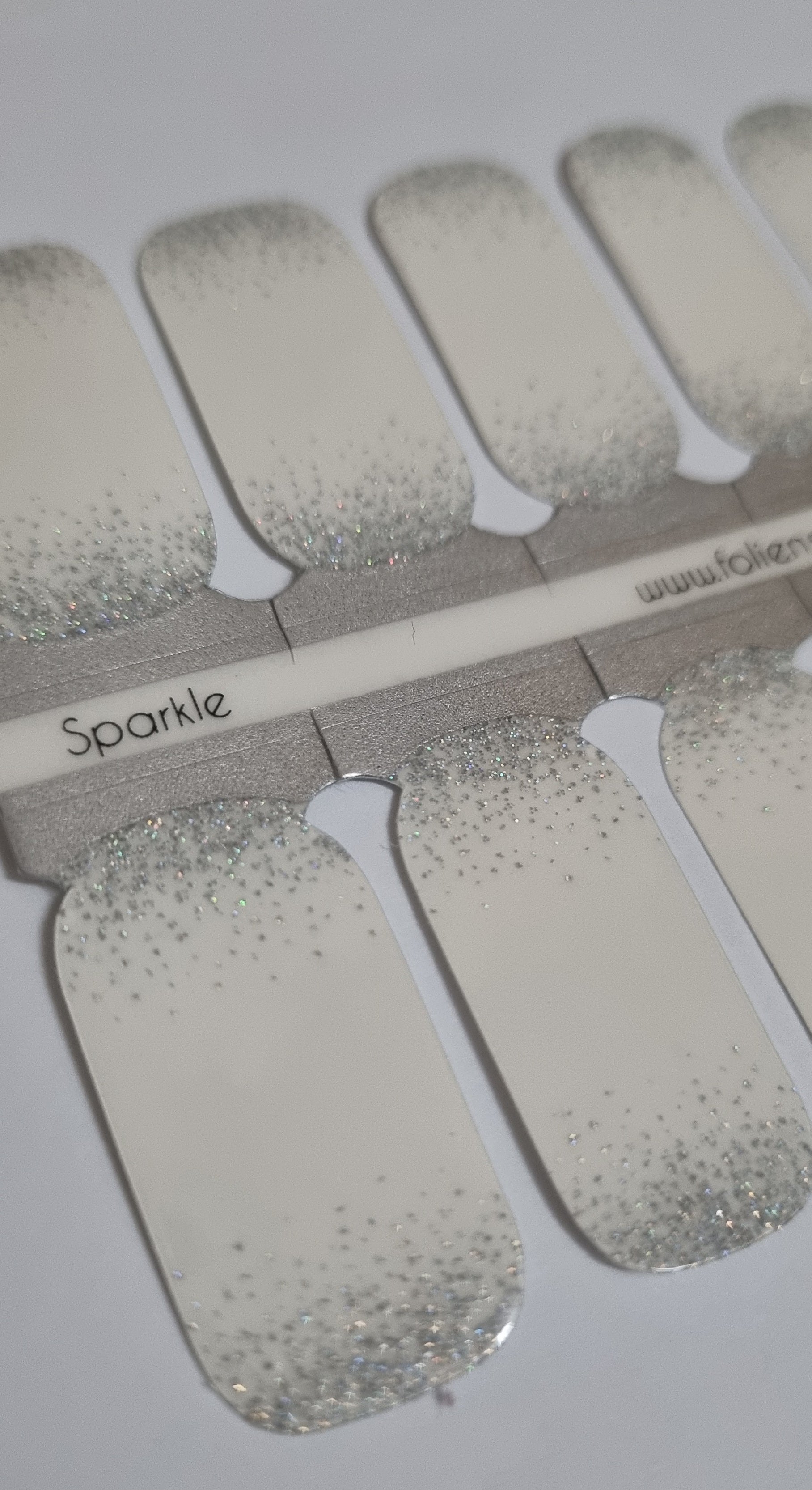 Transparent mit Glitzer; Tragebilder auf French, Kaelia und UV Wine