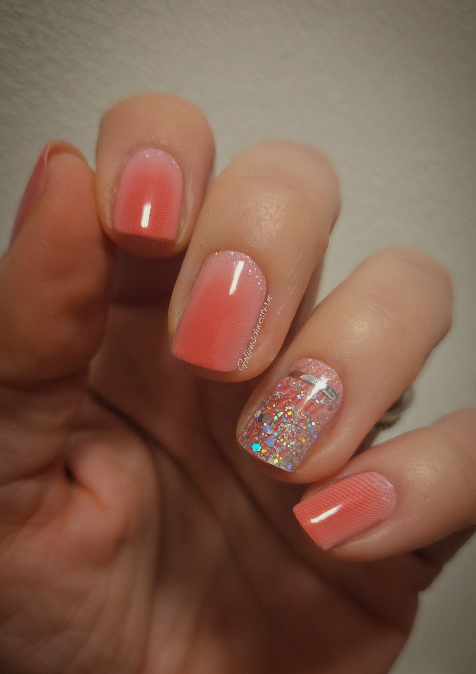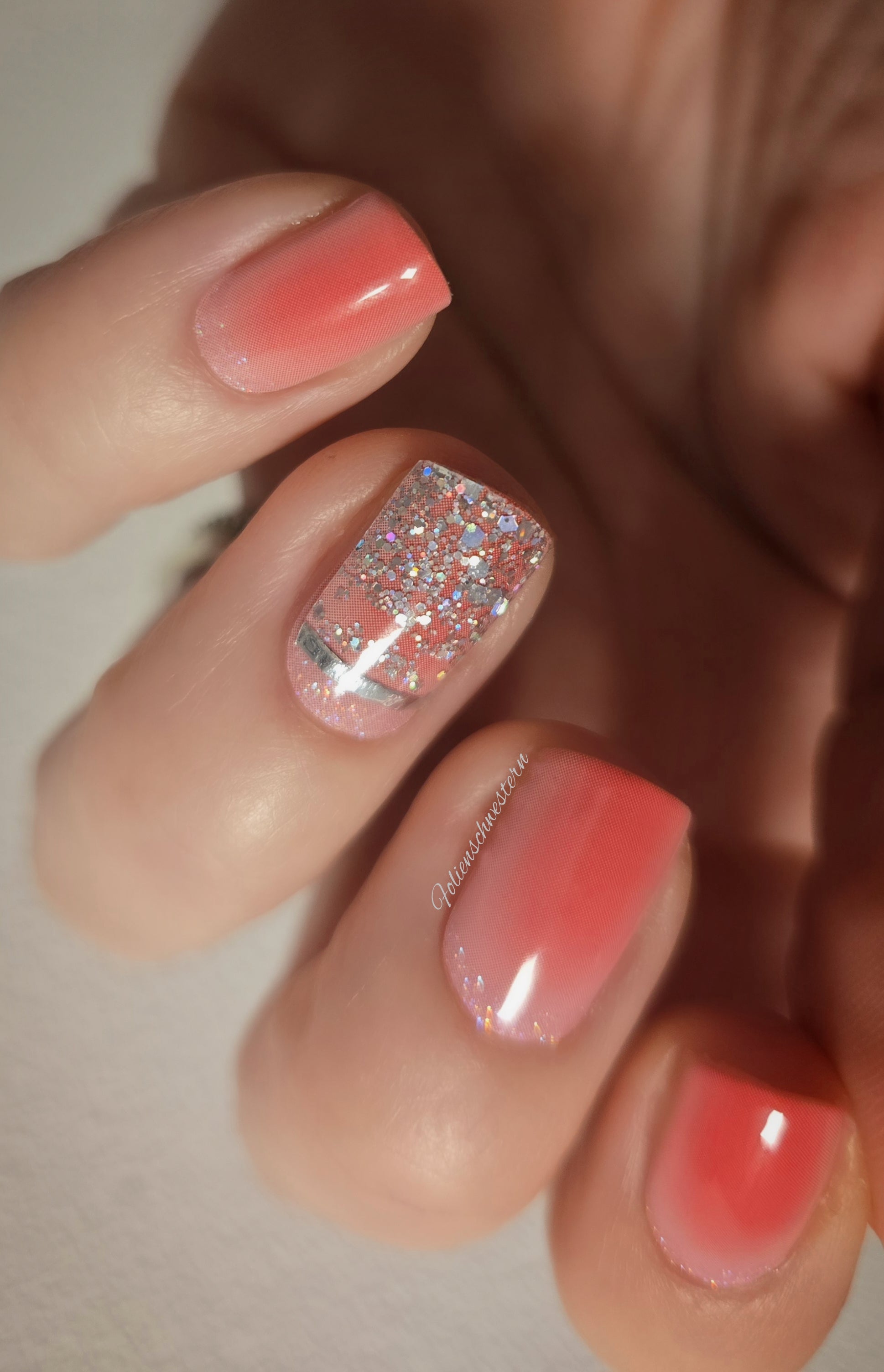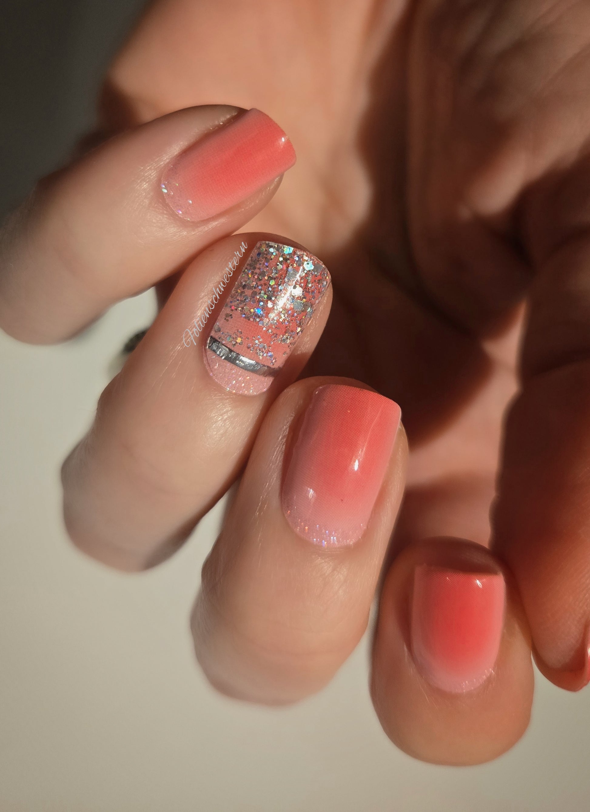 Transparent mit Holo Glitzer - hier auf UV Glazed Rainbow Sky und Kelly geklebt