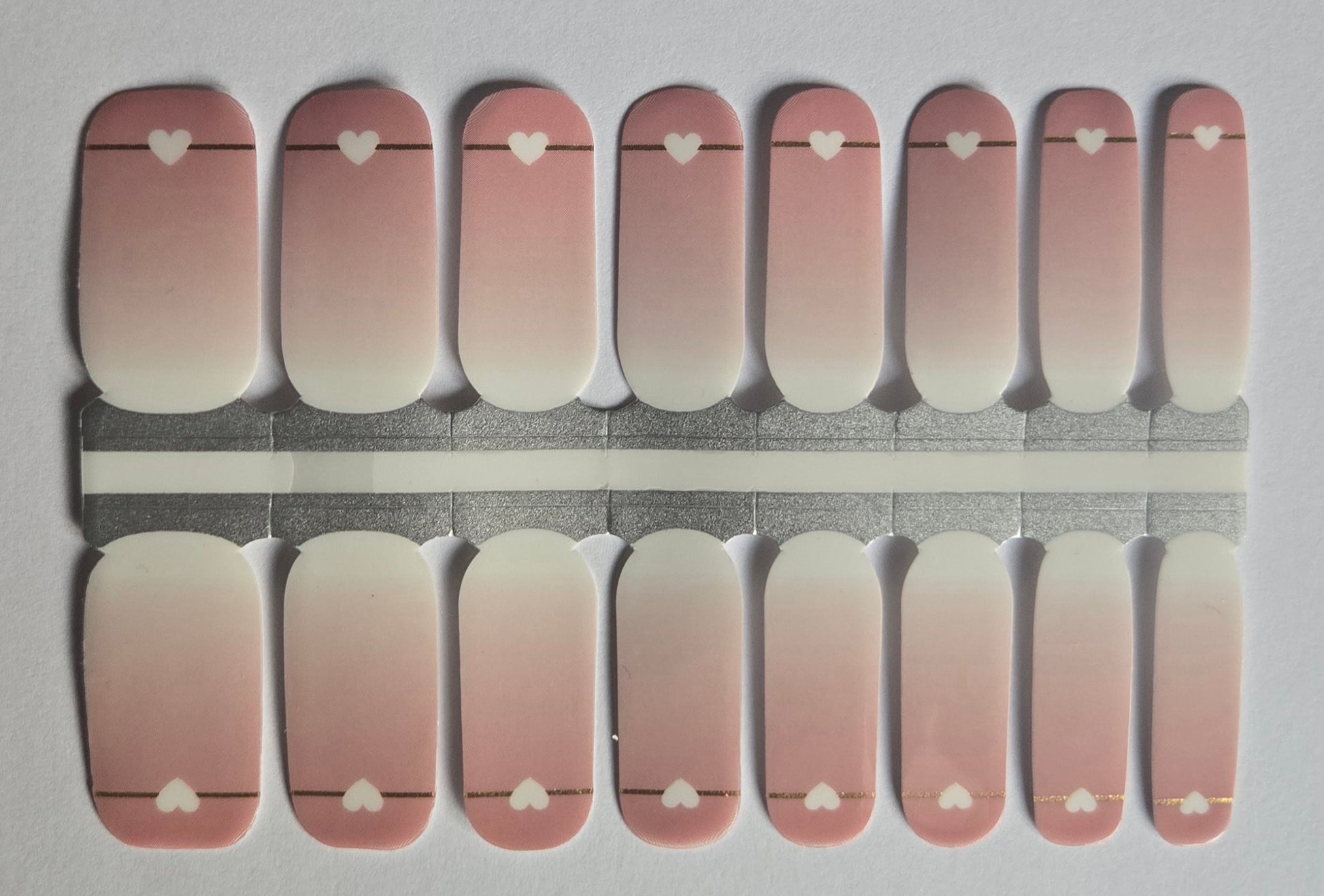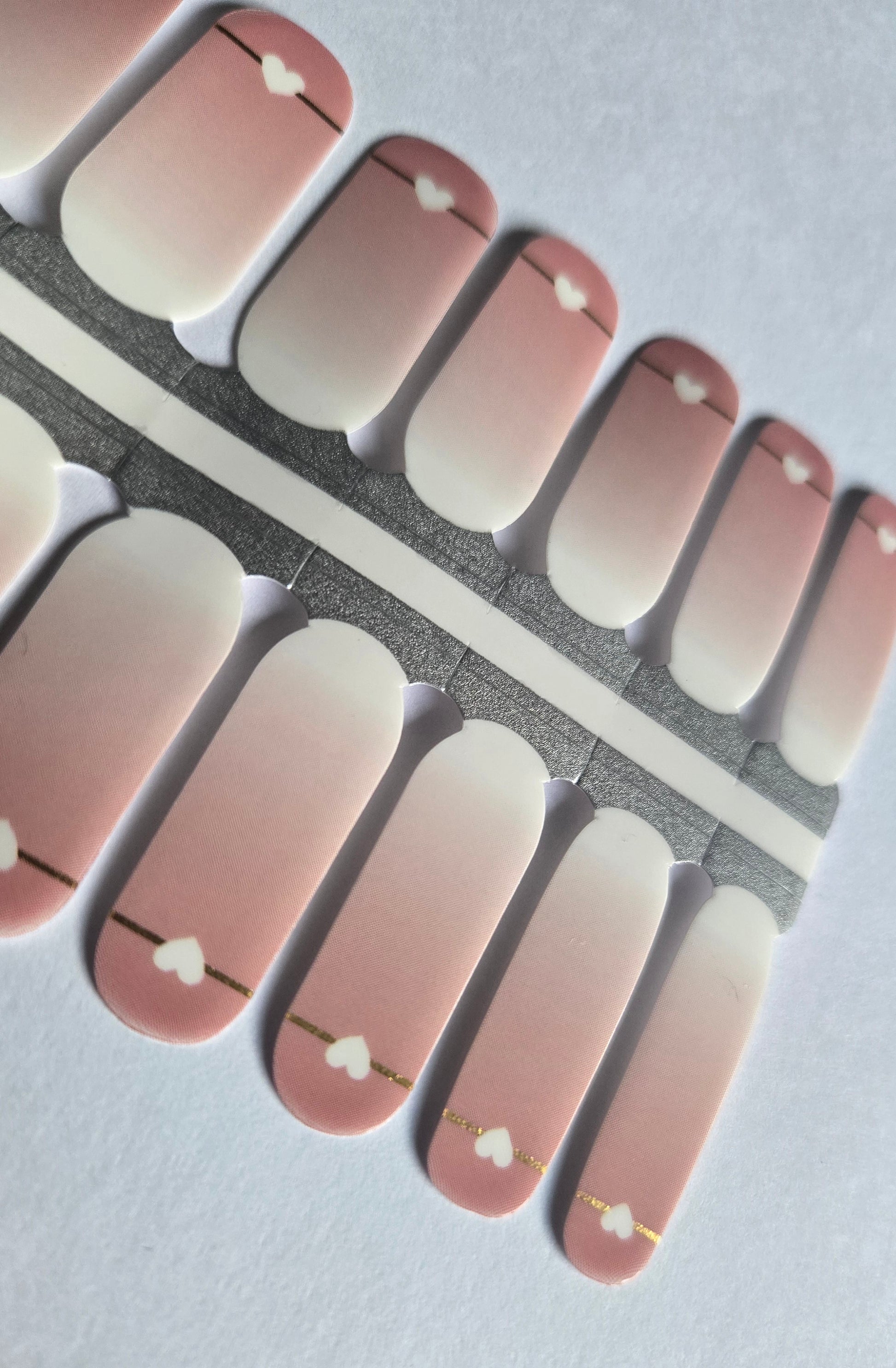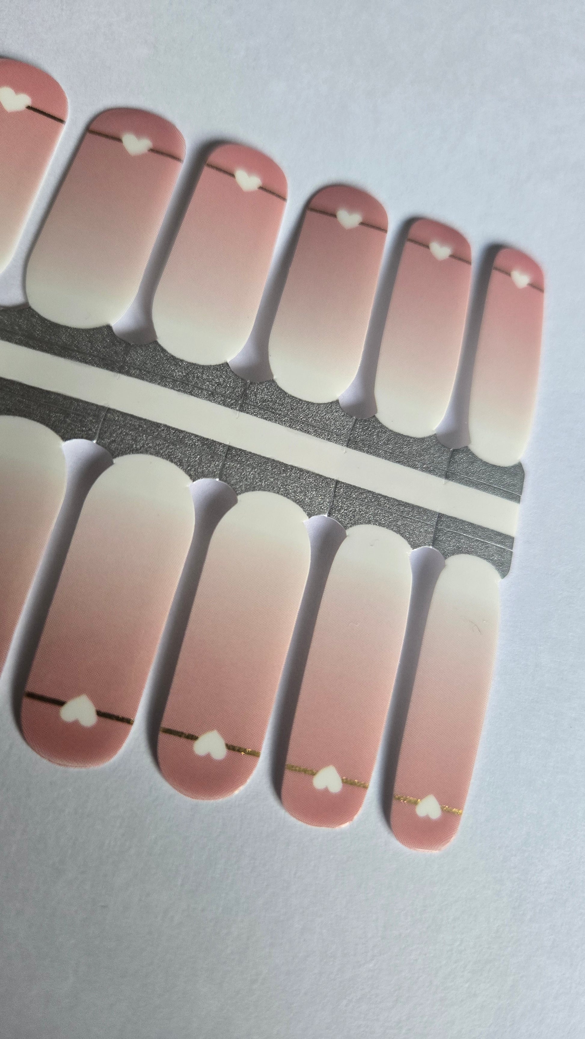 Ombre mit Goldfarbenen Linien und weißen Herzen