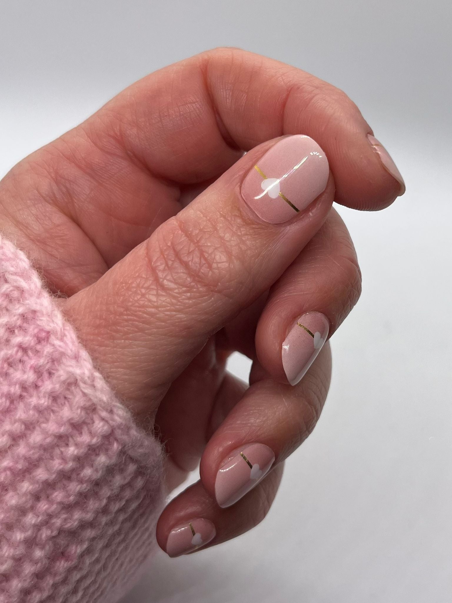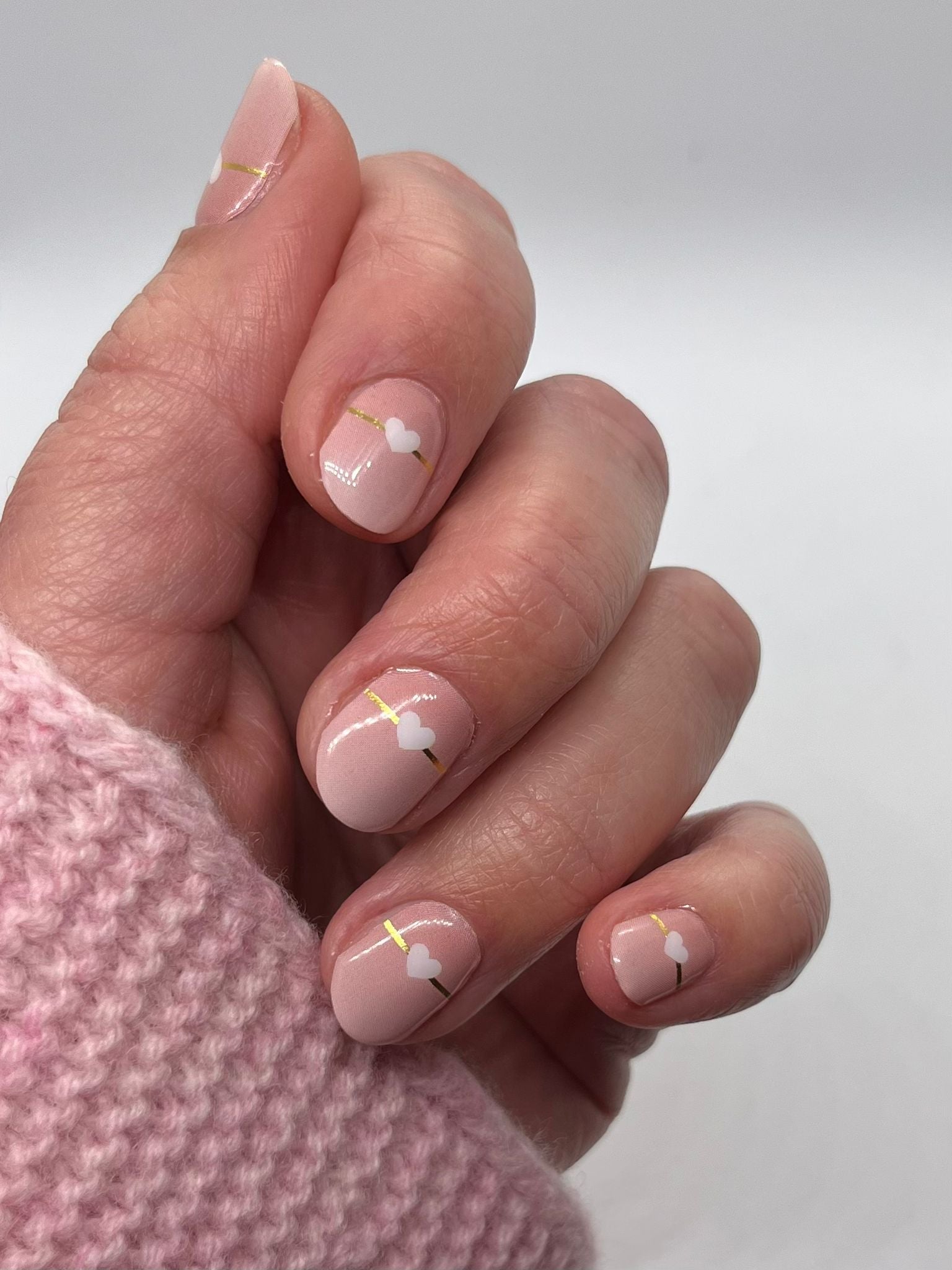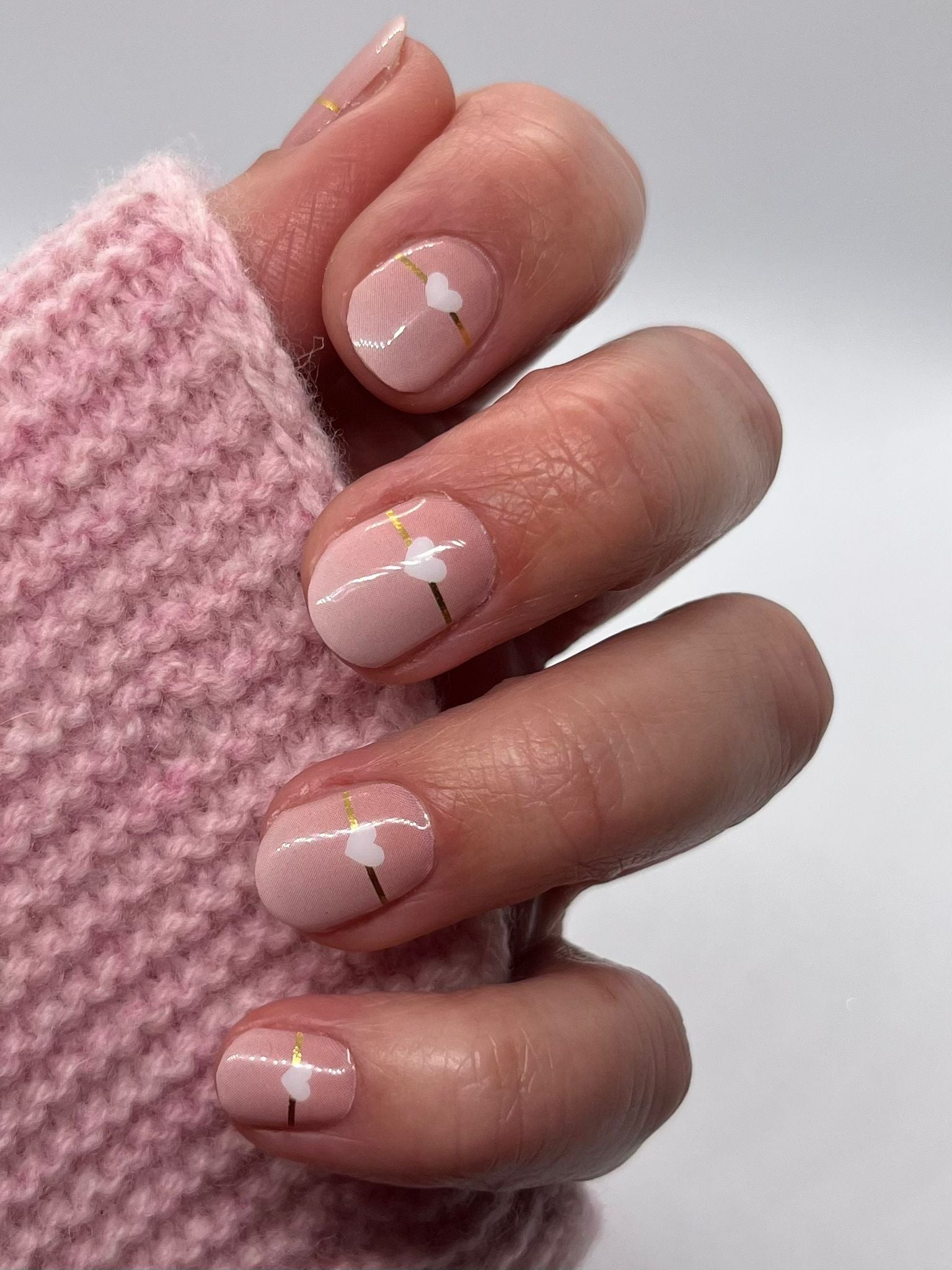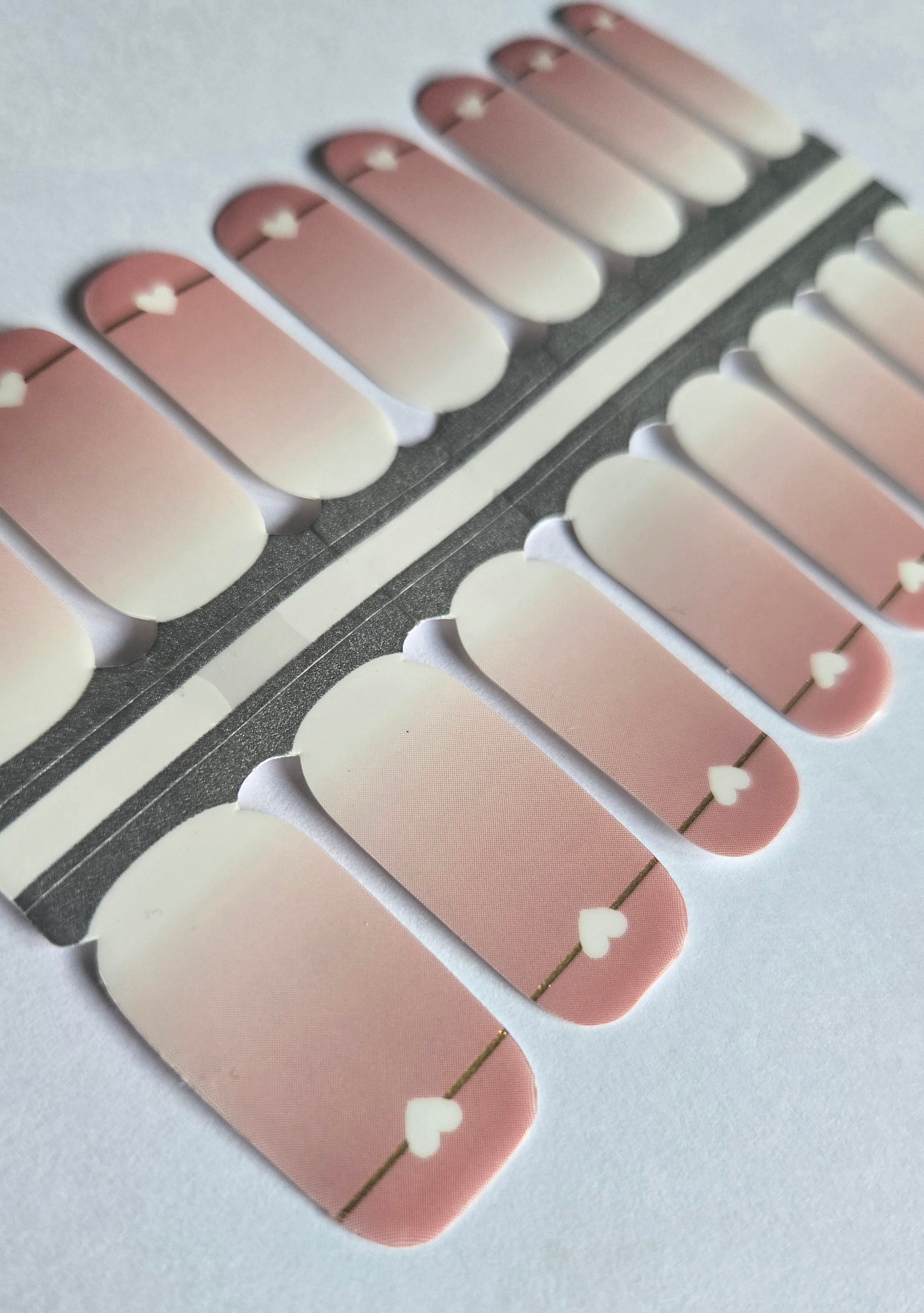 Ombre mit Goldfarbenen Linien und weißen Herzen