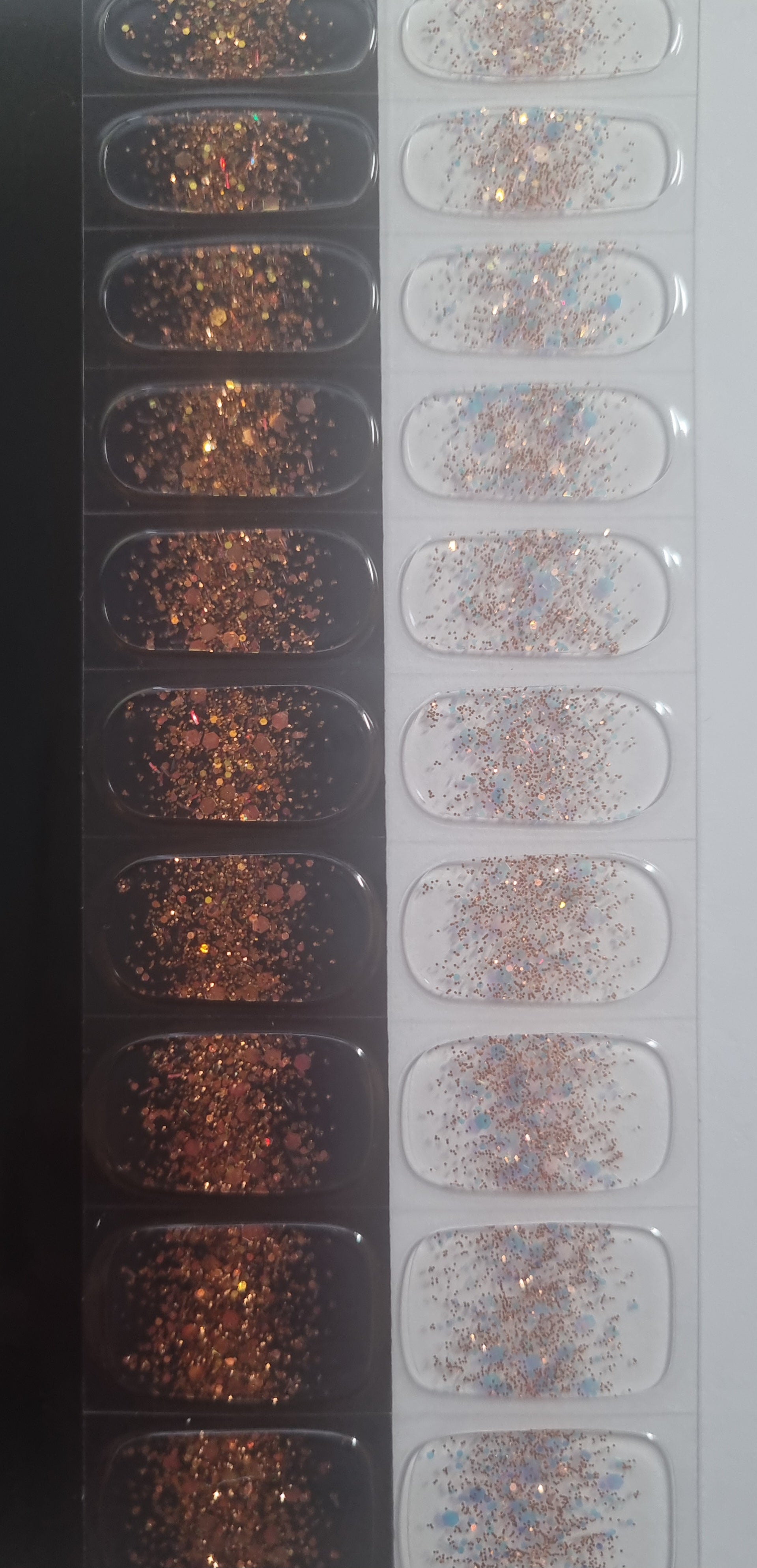 Transparent, Glitzerfrench. Wirkt anders je Hintergrund (Beispiel letztes Foto)