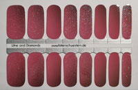 Farbe erscheint je nach Licht von Lachs bis Pink, rot. Mit Glitzer.